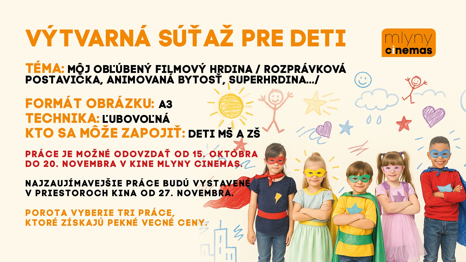 Multikino Mlyny Cinemas vyhlasuje výtvarnú súťaž pre deti.
